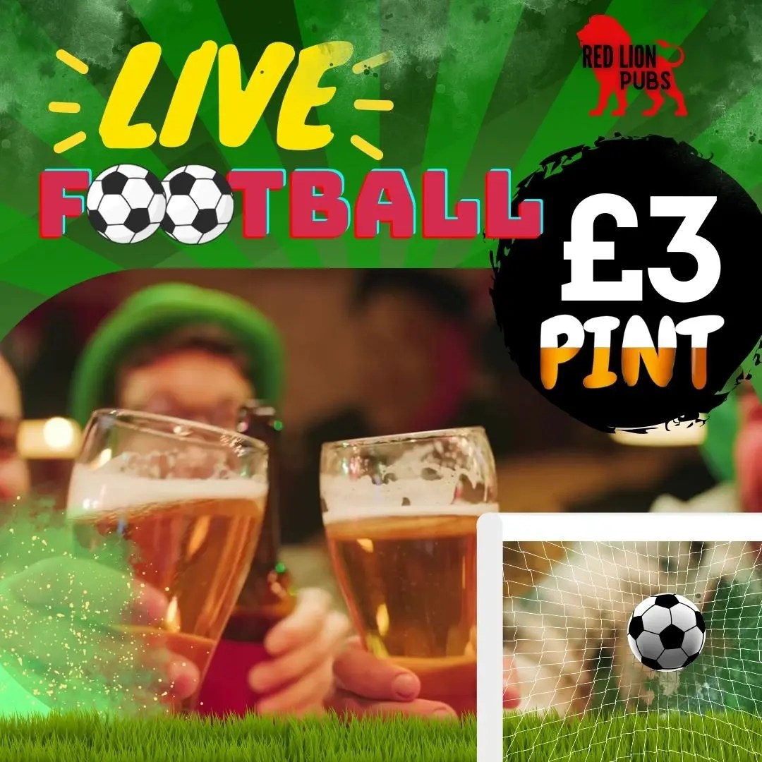 Cheer on your favourite team at Red Lion Pub – Live Football template. Immerse yourself in the excitement of live football matches with friends and fellow fans. Elevate your game day experience and enjoy the thrill of the match with our dynamic digital signage solution!